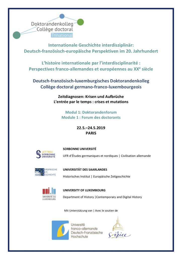 Die Mauern der altehrwürdigen Sorbonne Université boten den Teilnehmerinnen und Teilnehmern des fünften Workshops des trinationalen Doktorandenkollegs eine einzigartige Kulisse, um sich über die eigenen Promotionsprojekte auszutauschen, aktuelle Forschungsfragen zu diskutieren und den Jahresschwerpunkt Zeitdiagnosen: Krisen und Aufbrüche aus verschiedenen Blickwinkeln heraus zu betrachten.